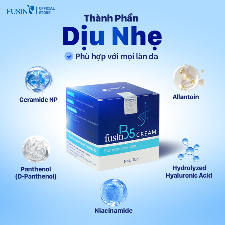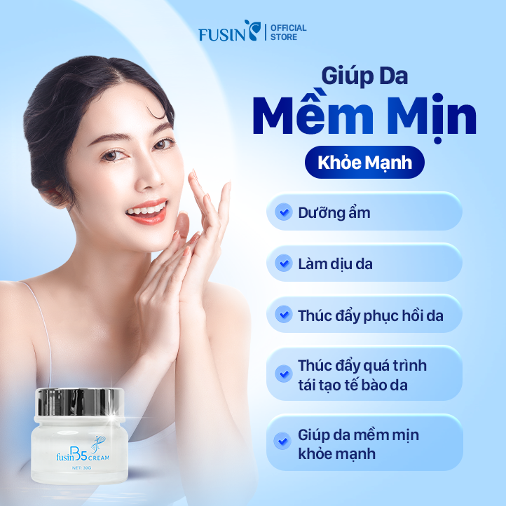 Fusin B5 Cream có kết cấu dạng kem mềm mịn, dễ dàng thấm vào da, không gây nhờn rít. Sản phẩm giúp dưỡng ẩm, làm dịu da, thúc đẩy quá trình phục hồi làn da bị hư tổn và góp phần thúc đẩy quá trình tái tạo tế bào da mới, mang đến làn da mềm mịn, khỏe mạnh hơn.