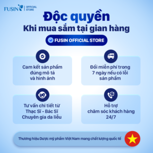 Fusin Việt Nam là thương hiệu dược mỹ phẩm với hơn 15 năm kinh nghiệm trong lĩnh vực chăm sóc và xử lý các vấn đề của da. Với đội ngũ chuyên gia và công thức tiên tiến, Fusin cam kết mang đến giải pháp làm đẹp an toàn và hiệu quả cho làn da Việt.