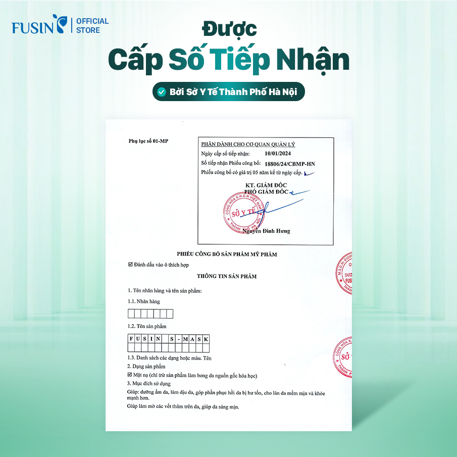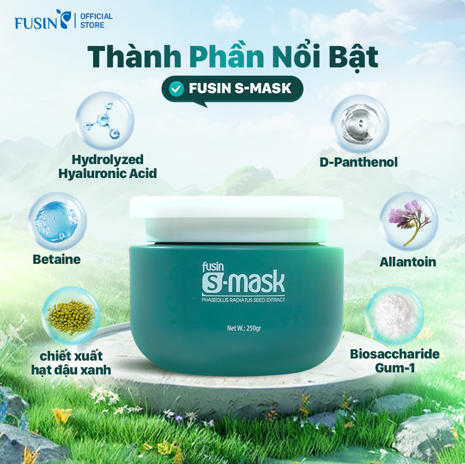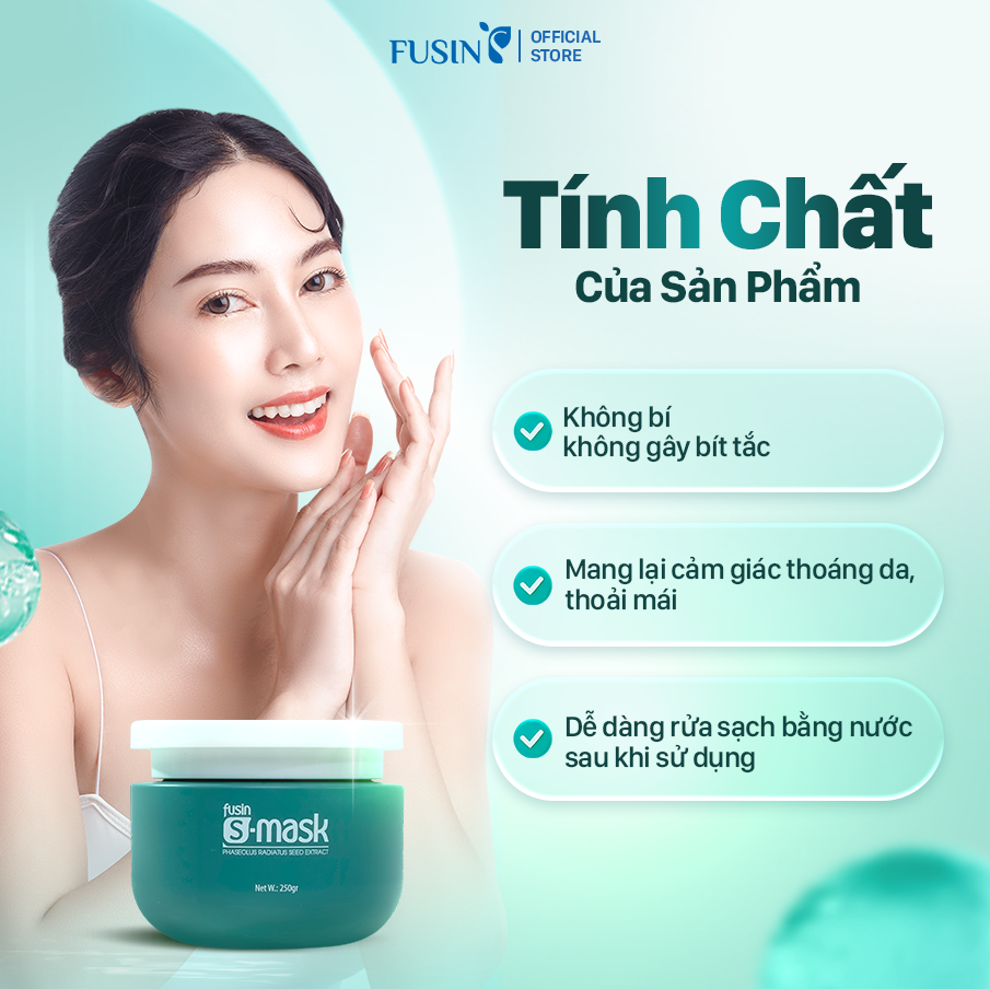 Fusin S-Mask có kết cấu dạng gel trong suốt, mềm mại và dễ tán đều trên da. Khi sử dụng, mặt nạ mang lại cảm giác mát dịu, thoải mái và thấm nhanh, không gây nhờn rít. Công thức giúp cung cấp độ ẩm, làm dịu da, hỗ trợ phục hồi và giúp làn da trở nên mềm mịn, khỏe mạnh.