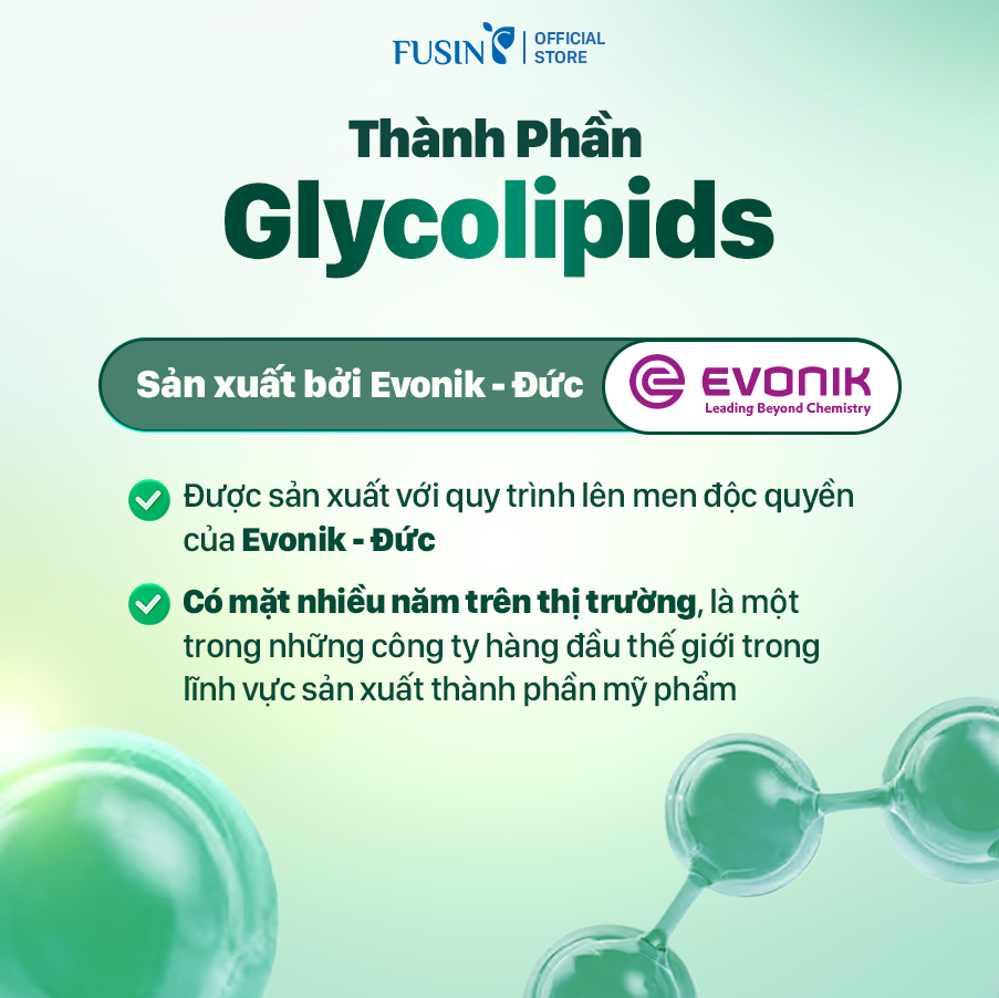 Glycolipids: là chất hoạt động bề mặt dịu nhẹ. Thành phần này tạo bọt dày, mịn và dễ dàng rửa sạch, mang lại cảm giác dễ chịu khi sử dụng.