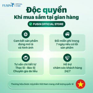 Fusin Việt Nam là thương hiệu dược mỹ phẩm với hơn 15 năm kinh nghiệm trong lĩnh vực chăm sóc và xử lý các vấn đề của da. Với đội ngũ chuyên gia và công thức tiên tiến, Fusin cam kết mang đến giải pháp làm đẹp an toàn và hiệu quả cho làn da Việt.