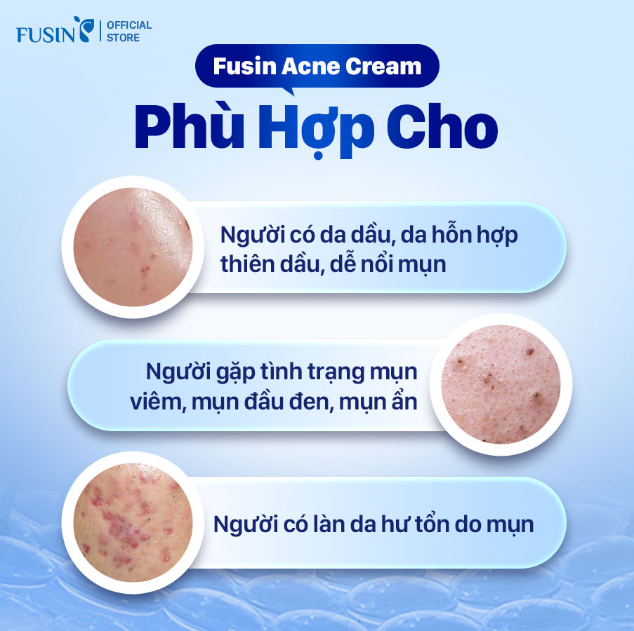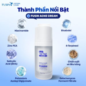 Fusin Acne Cream có kết cấu mỏng nhẹ, dễ dàng thấm nhanh vào da mà không gây nhờn rít hay bí tắc lỗ chân lông. Công thức được thiết kế riêng cho da mụn, giúp duy trì độ ẩm tự nhiên và tạo cảm giác dễ chịu ngay khi thoa. Sản phẩm phù hợp sử dụng hằng ngày để hỗ trợ cải thiện và bảo vệ làn da mụn.