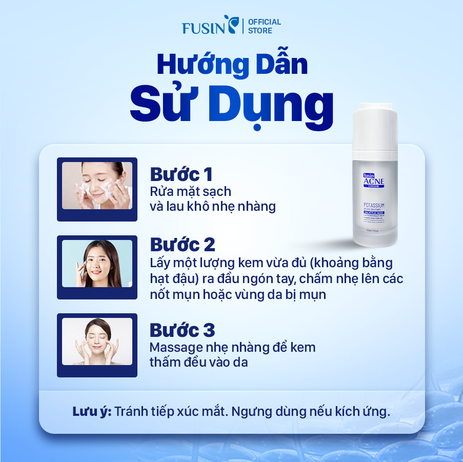 – Lấy một lượng kem vừa đủ (khoảng bằng hạt đậu) ra đầu ngón tay, chấm nhẹ lên các nốt mụn hoặc vùng da bị mụn.