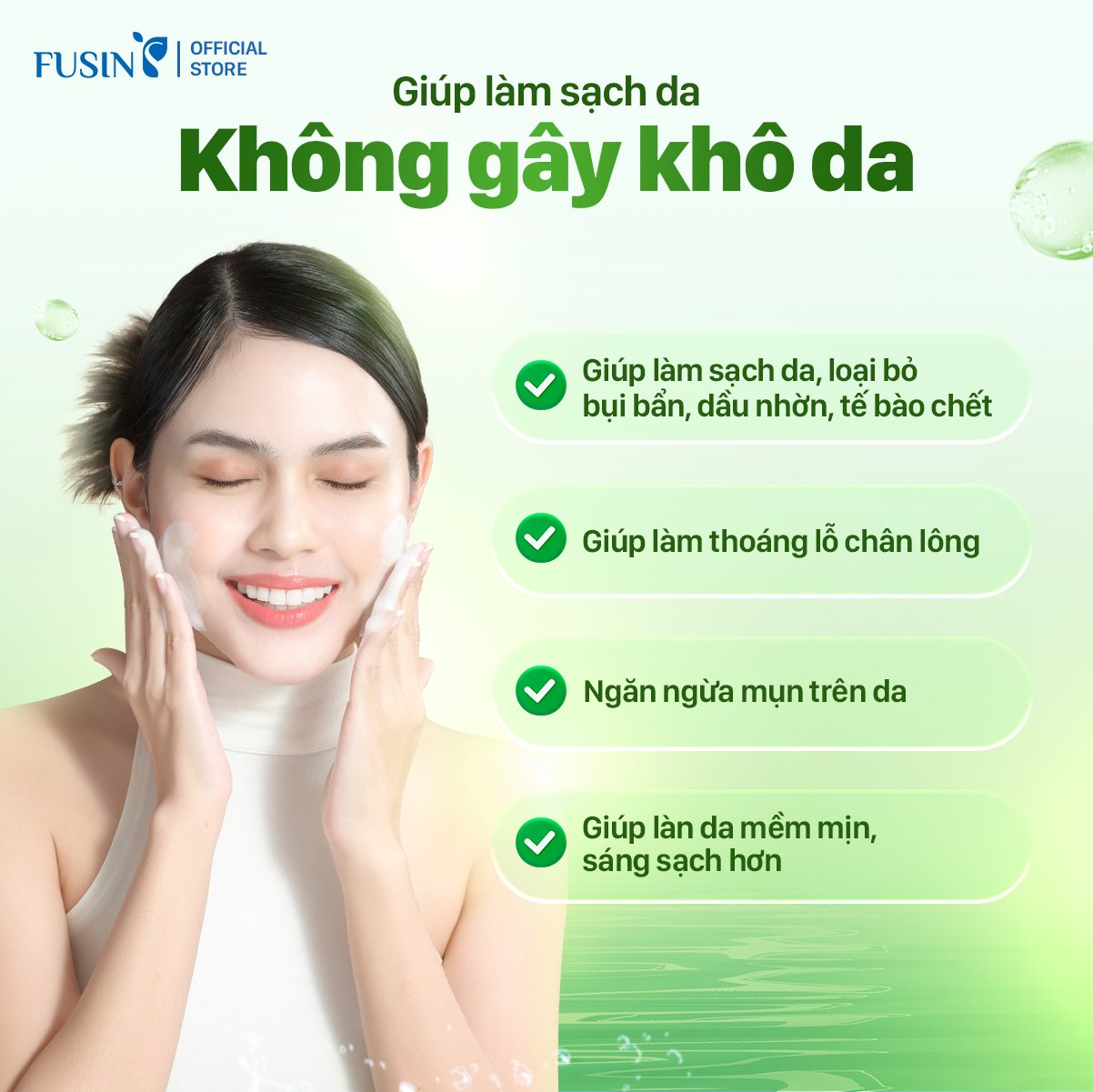 – Làm sạch da hằng ngày, loại bỏ bụi bẩn, dầu nhờn và tế bào da chết