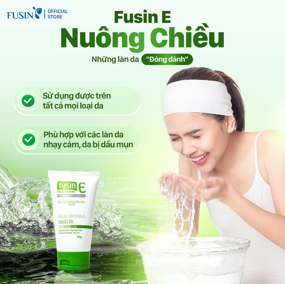 Đánh giá Sữa rửa mặt Fusin E làm sạch sâu, dịu nhẹ cho da dầu, da mụn, da nhạy cảm 120ml
