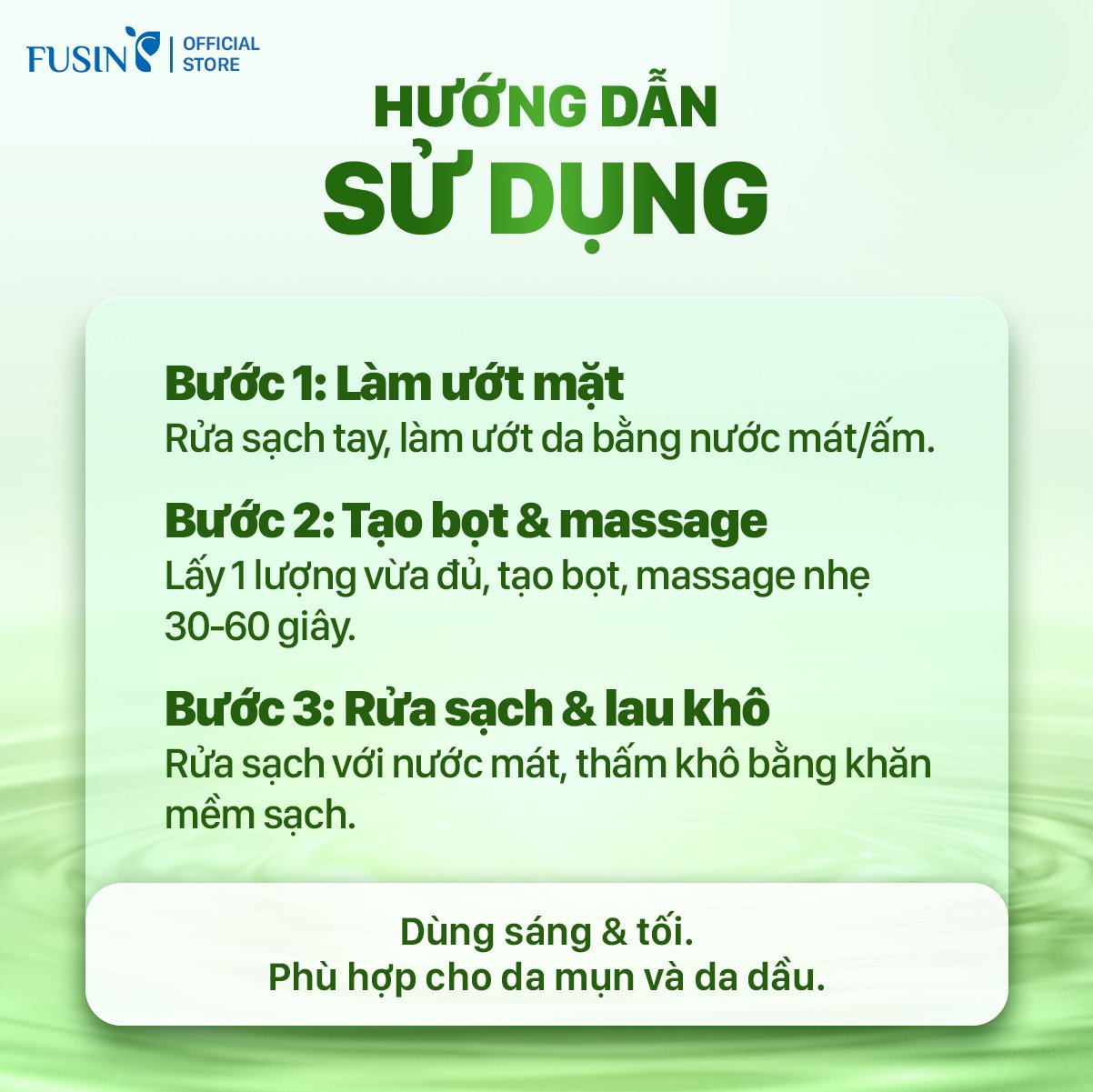 – Sử dụng 2 lần mỗi ngày: sáng và tối.