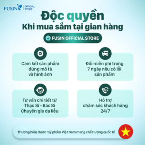 Fusin Việt Nam là thương hiệu dược mỹ phẩm với hơn 15 năm kinh nghiệm trong lĩnh vực chăm sóc và xử lý các vấn đề của da. Với đội ngũ chuyên gia và công thức tiên tiến, Fusin cam kết mang đến giải pháp làm đẹp an toàn và hiệu quả cho làn da Việt.