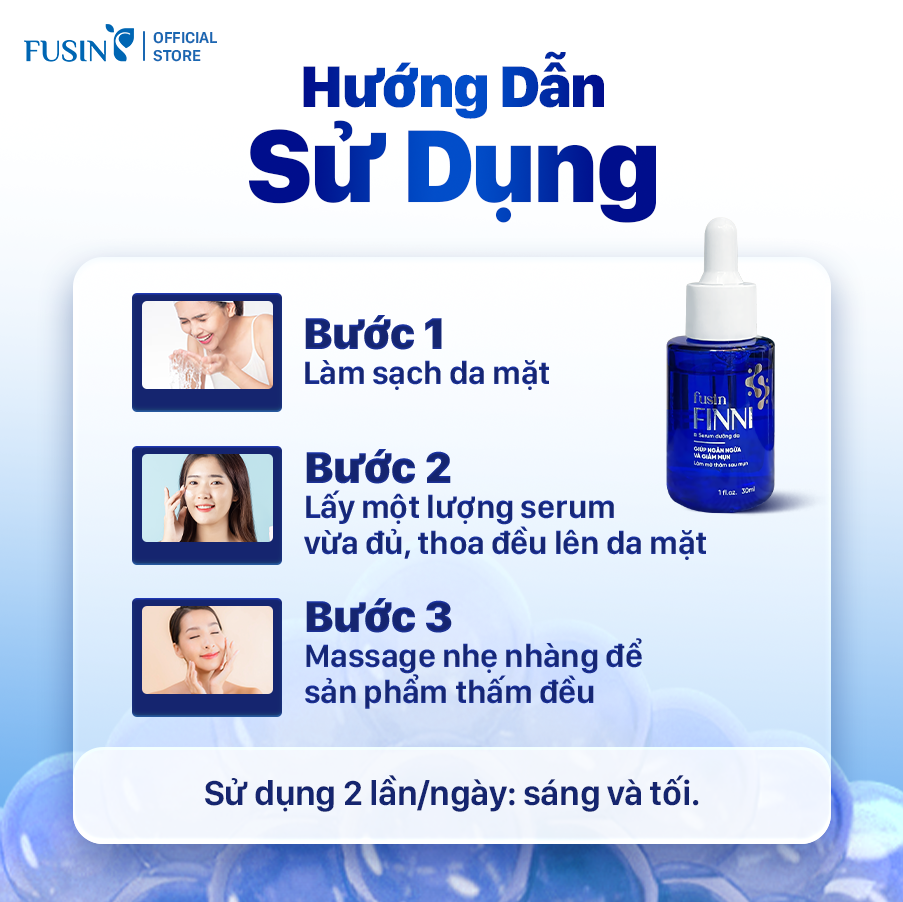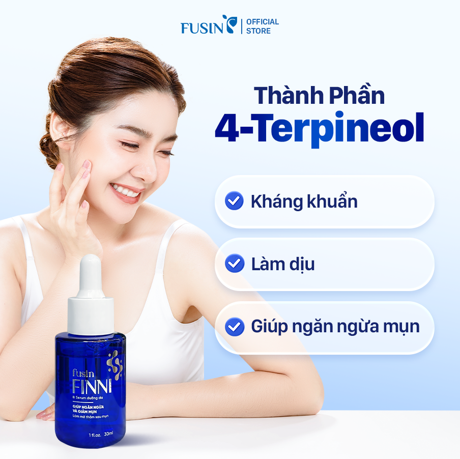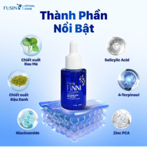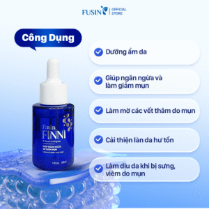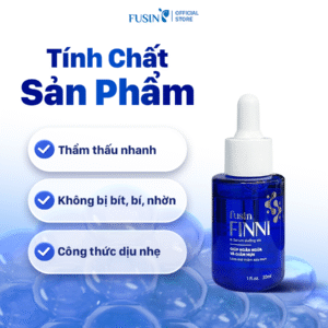 Fusin Finni là serum dưỡng da có kết cấu lỏng nhẹ, dễ dàng thấm vào da mà không gây nhờn rít. Sản phẩm giúp cấp ẩm, chăm sóc da mụn ở nhiều khía cạnh, hỗ trợ ngăn ngừa và làm giảm mụn, làm mờ thâm, cải thiện làn da hư tổn, mang lại bề mặt da sáng mịn, khỏe mạnh. Công thức kết hợp nhiều thành phần kháng khuẩn, làm dịu da, cùng chiết xuất thiên nhiên, phù hợp chăm sóc da mụn hằng ngày.